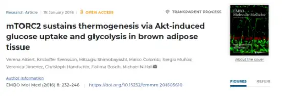 [2]Albert V, Svensson K, Shimobayashi M, et al. mTORC2 sustains thermogenesis via Aktinduced glucose uptake and glycolysis in brown adipose tissue. EMBO Mol Med. 2016 Mar 1;8(3):232-46.