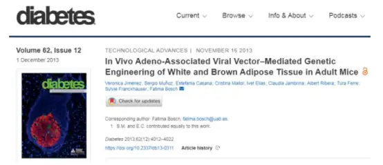[1]Jimenez V, Muñoz S, Casana E, et al. In vivo adeno-associated viral vector-mediated genetic engineering of white and brown adipose tissue in adult mice. Diabetes. 2013 Dec;62(12):4012-22. doi: 10.2337/db13-0311. Epub 2013 Sep 16. PMID: 24043756; PMCID: PMC3837045.