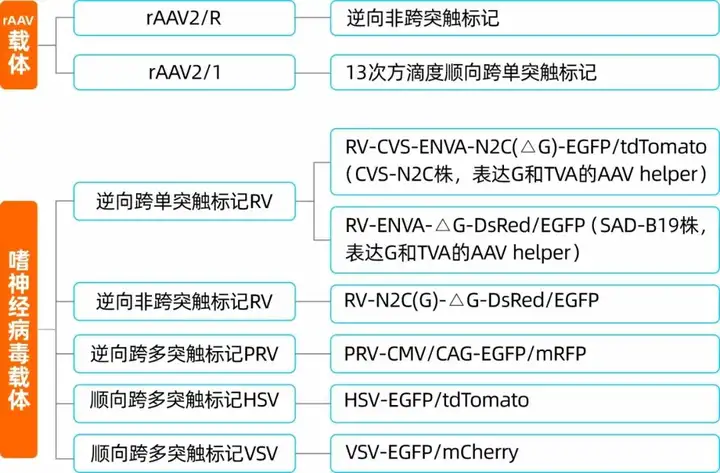 我司可提供用于神经环路示踪的诸多病毒工具,详情如下: