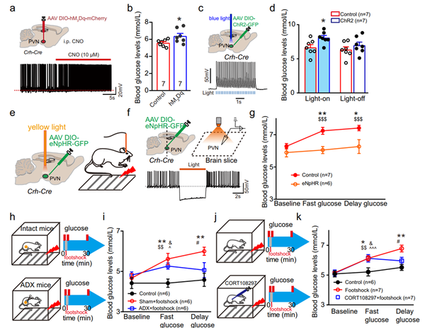 图1. PVNCRH神经元调节急性应激中葡萄糖的释放