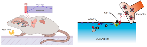 图2. PVNCRH→VMH环路介导应激葡萄糖释放的早期阶段