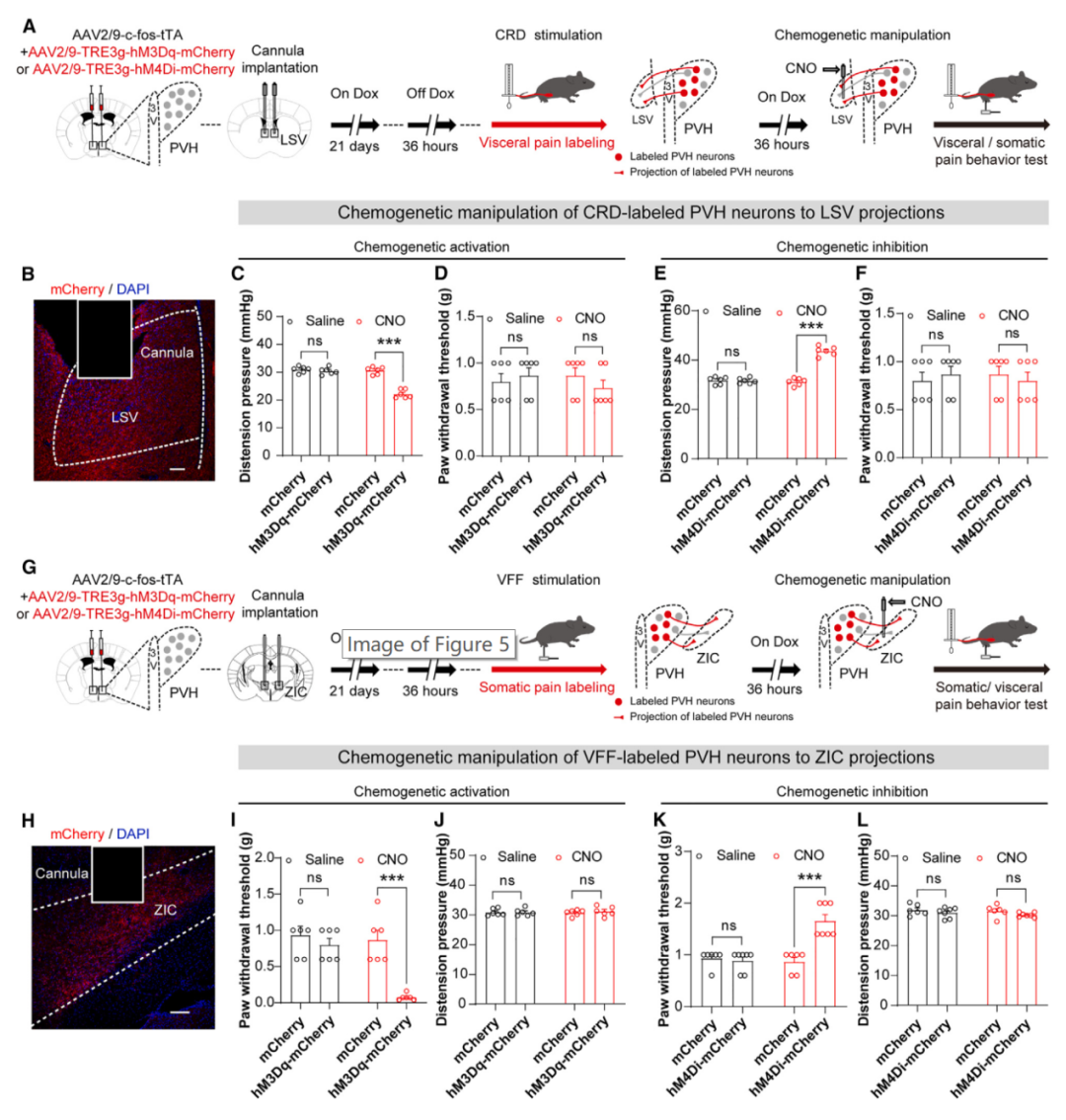 图5. PVH-LSV调节内脏痛行为,PVH-ZIC调节躯体痛行为