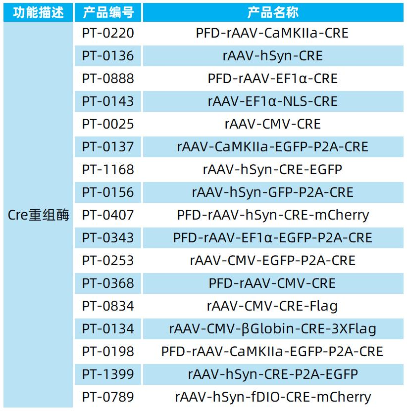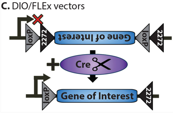另外我司提供多种Cre-LoxP系统病毒工具,涵盖DIO、DO、FLEX等系统,支持基因干扰、过表达、神经示踪、光遗传学、化学遗传学及钙成像等多种调控及检测功能。