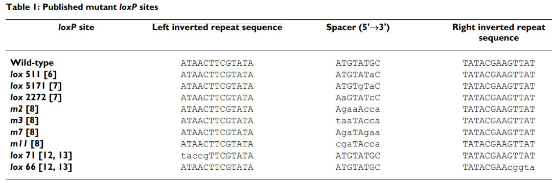 自Cre-LoxP系统被发现以来,科学家们对其进行了多项优化和改良,开发出多种突变版本,以提升其在不同生物体和条件下的应用效率和特异性。通过对LoxP位点序列的改造,产生了如Lox2272、Lox511、Lox5171、LoxN等变体,这些变体不仅在不同生物体中表现出更高的识别和切割效率,还能通过组合使用,实现更复杂的基因重组。