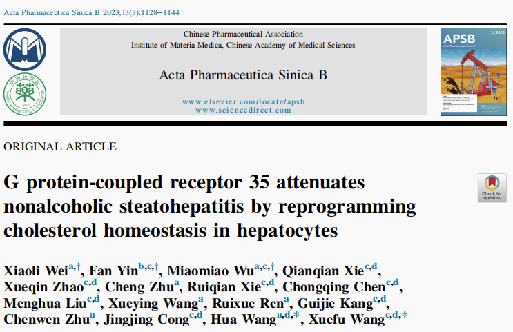 近日,安徽医科大学王学富教授和王华教授课题组合作,在药学领域顶刊《药学学报(Acta Pharmaceutica Sinica B)》(中科院一区,IF=14.9)上发表题为《G蛋白偶联受体35通过重编肝脏胆固醇稳态来减轻非酒精性脂肪性肝炎(G protein-coupled receptor 35 attenuates nonalcoholic steatohepatitis by reprogramming cholesterol homeostasis in hepatocytes)》的学术论文。本研究发现,肝细胞GPR35通过调节肝脏胆固醇稳态来缓解NASH。具体而言,肝细胞中过表达GPR35可抵抗HFCF饮食诱导的脂肪性肝炎,而GPR35缺失则产生相反效果。给予GPR35激动剂Kyna可抑制HFCF饮食诱导的小鼠脂肪性肝炎。Kyna/GPR35通过ERK1/2信号通路诱导StAR相关脂质转移蛋白4(STARD4)表达,最终促进肝脏胆固醇酯化和BAS。过表达STARD4可上调BAS限速酶CYP7A1和CYP8B1的表达,促进胆固醇向胆汁酸转化。在肝细胞特异性STARD4敲低小鼠中,GPR35过表达的保护作用消失。肝细胞过表达STARD4可逆转GPR35缺失对HFCF饮食诱导脂肪性肝炎的加重效应。这些发现表明GPR35-STARD4轴是治疗NAFLD的潜在靶点。