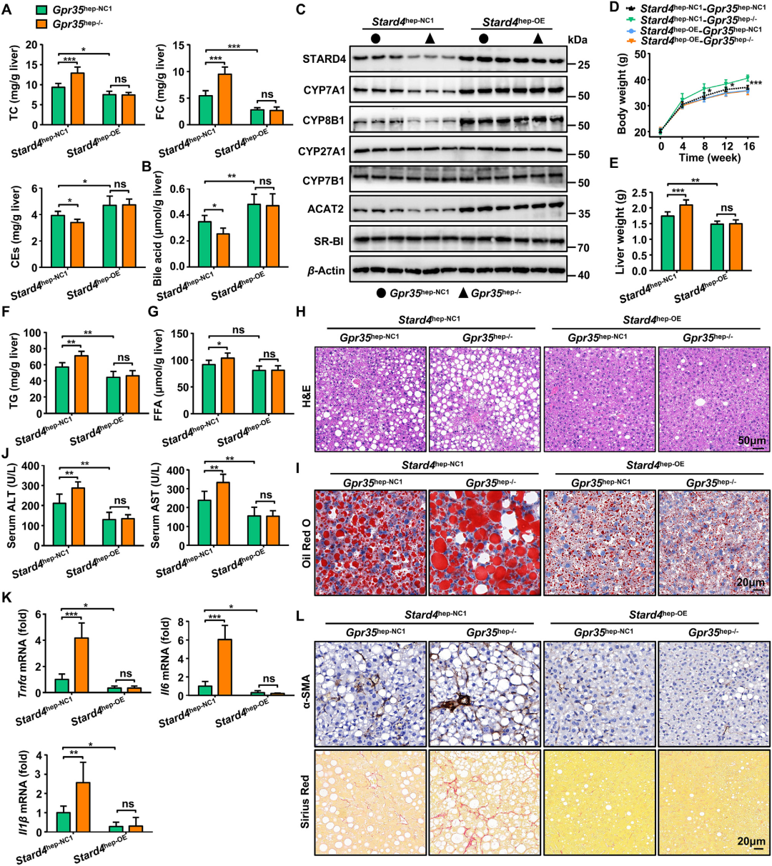 图7.STARD4功能的增强逆转了GPR35缺失导致的脂肪性肝炎的加重