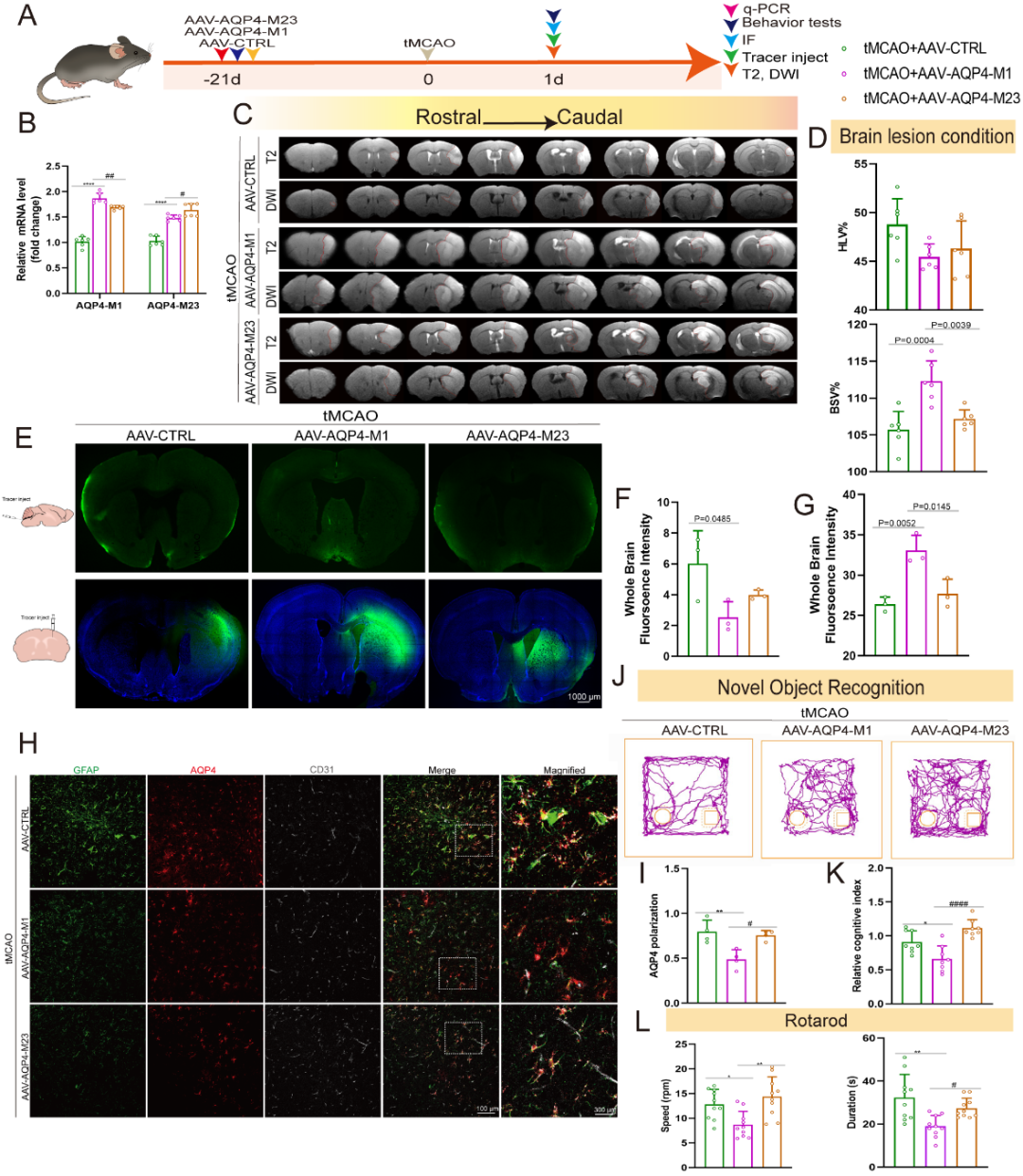 图5.两种AQP4异构体过表达对缺血再灌注小鼠脑损伤及脑类淋巴系统的影响