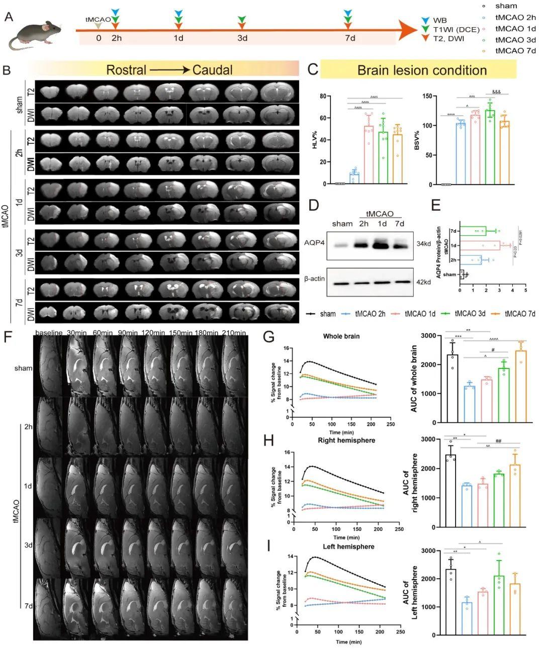 图1.缺血再灌注小鼠脑损伤及脑类淋巴系统功能的动态变化情况