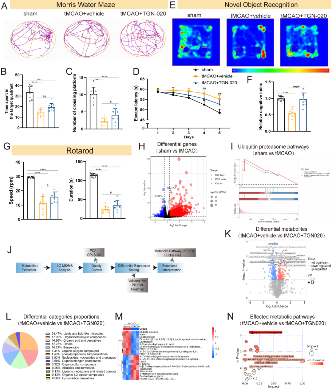 图4.TGN-020对缺血再灌注小鼠认知功能及代谢模式的影响