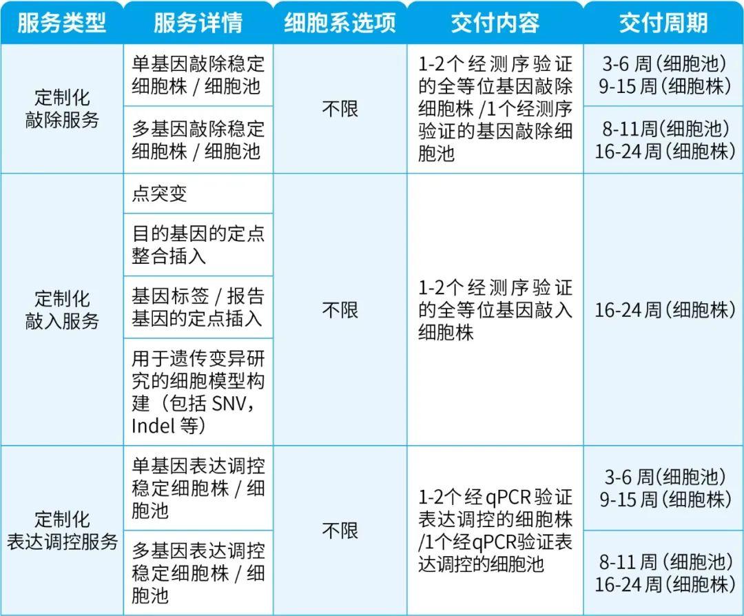 备注:可提供的细胞系包括以下几种,肿瘤细胞系如HeLa、HCT 116、HuH-7、Hep G2、A549、A431、TE671、K562等;其他细胞系如HEK293T、HEK293、DC2.4、BHK-21等。若客户所需细胞系不在上述范围内,则需由客户自行提供相应的细胞系。