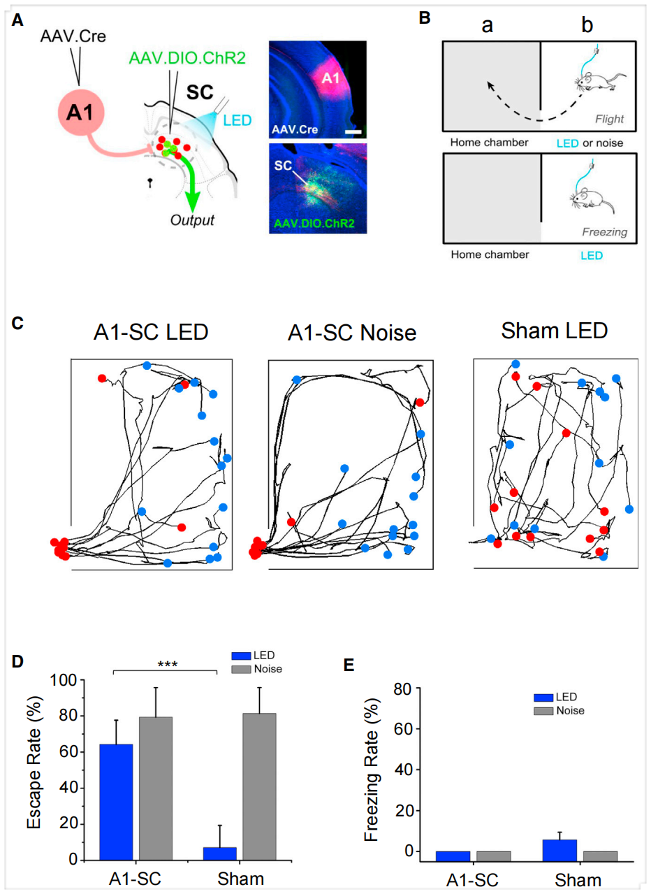 图3.A1输入定义SC神经元驱动先天逃避行为