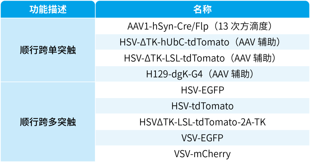 2020年4月15日,该团队在Journal of Neuroscience发表题为“Synaptic Specificity and Application of Anterograde Transsynaptic AAV for Probing Neural Circuitry”的研究论文,该研究证实AAV1可优先靶向突触后连接神经元,且其跨突触传播高度依赖突触神经递质的释放。研究显示,除谷氨酸能通路外,AAV1还可通过GABA能突触传播至兴奋性和抑制性神经元,但在神经调质投射通路(如5-羟色胺能、胆碱能及去甲肾上.腺素能通路)中几乎不传播。此外,AAV1可经大脑多个区域的长程下行投射有效转导脊髓神经元。AAV1的跨突触传播不限于Cre表达型AAV1——在Flp报告小鼠(Frt-GFP)中,使用Flp表达病毒(AAV1-hSyn-Flp)同样有效。因此,AAV1介导的跨突触标记可扩展至多种重组酶系统,为基于多标准的细胞类型交叉筛选提供技术支持。