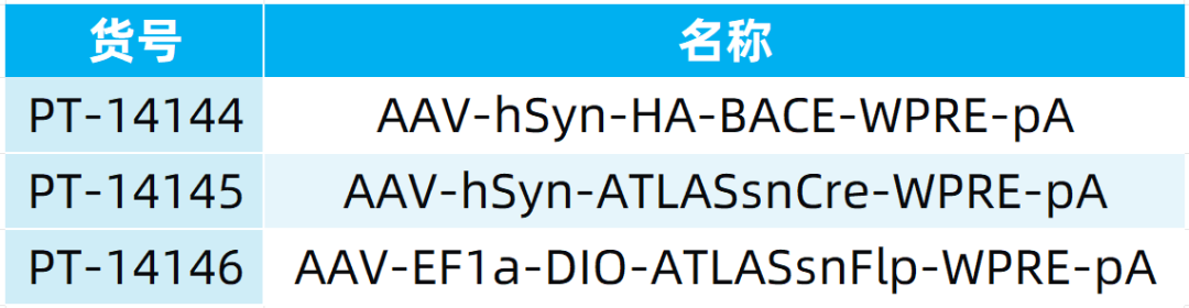 我司可提供ATLAS顺行跨单级突触病毒工具,列表如下: