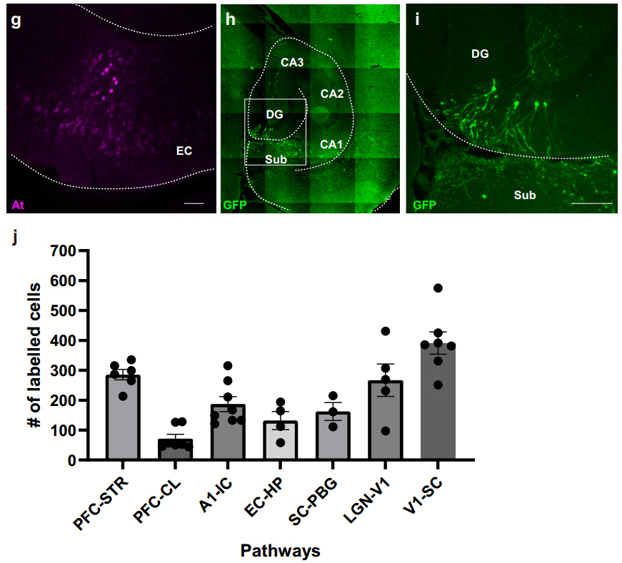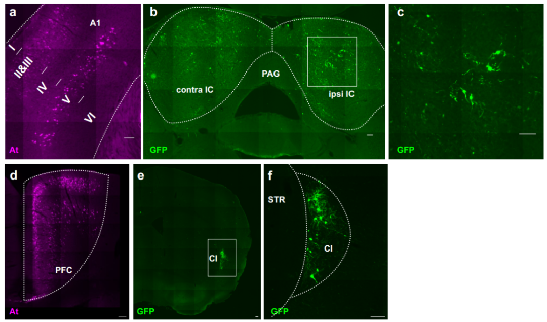 图14. ATLASsnCre从皮层到皮层下区域的跨突触标记