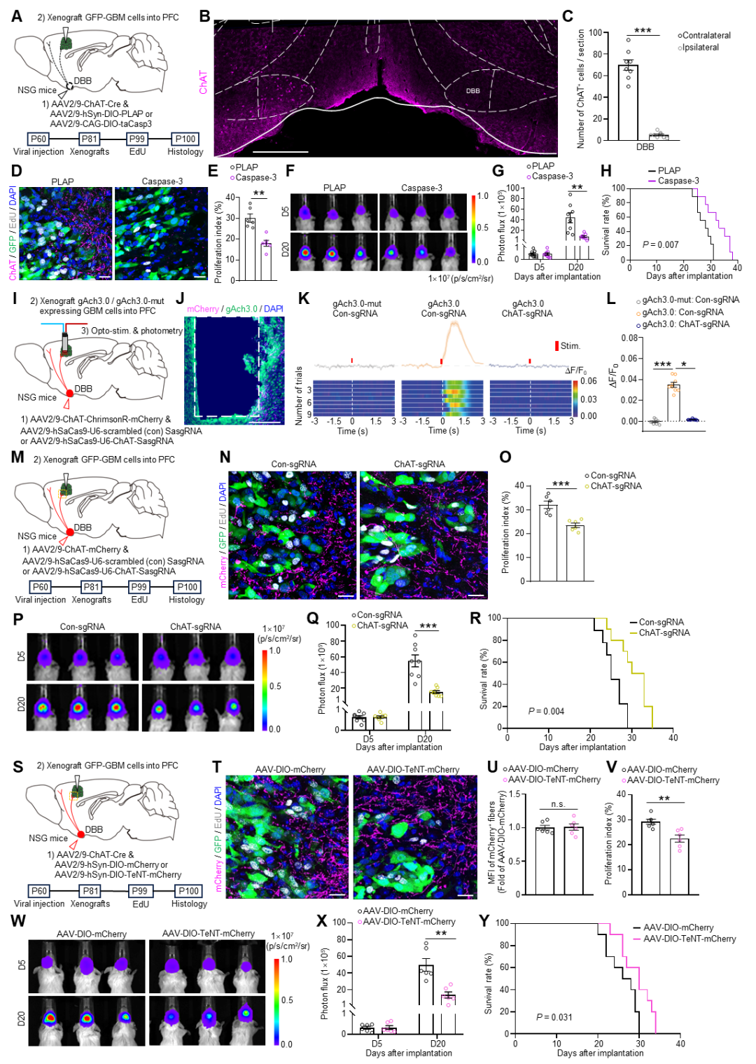 3.揭示胆碱能及兴奋性神经元调控胶质瘤增殖的机制