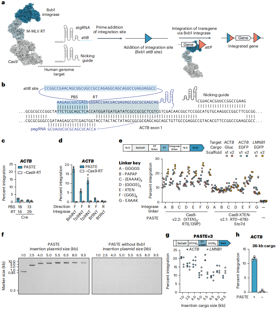 图1. PASTE编辑可实现不依赖DNA修复途径的可编程基因插入
