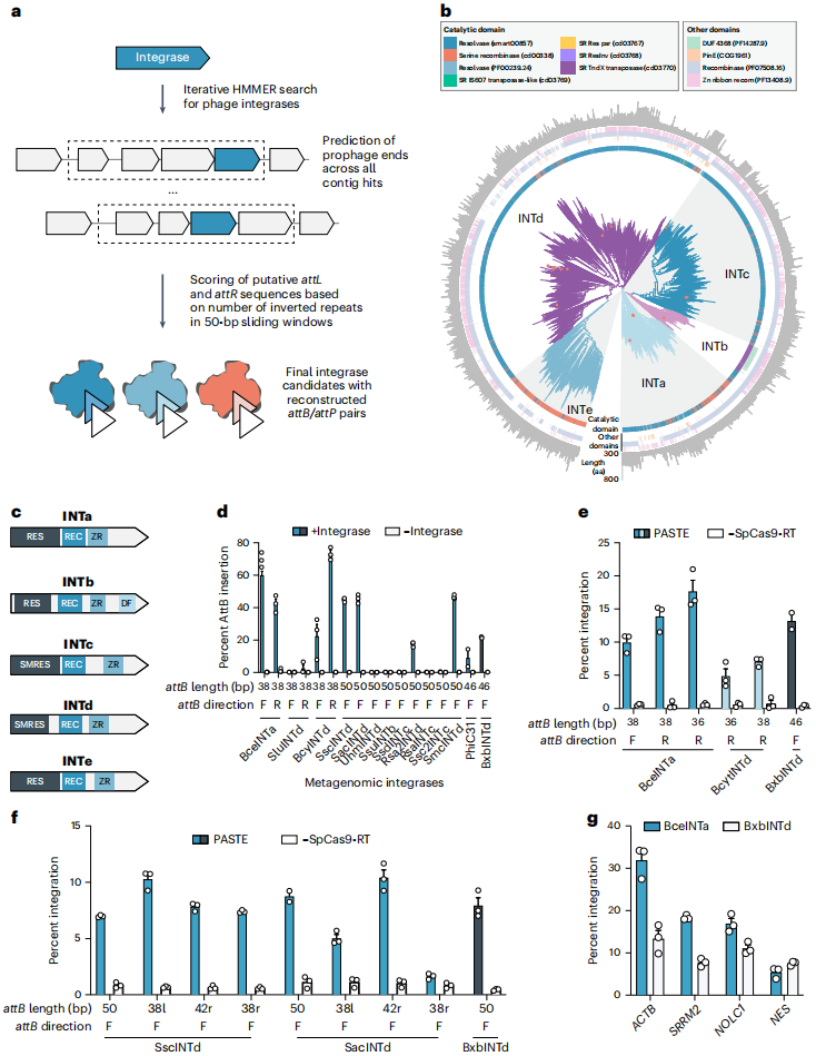 图9. 可用于PASTE可编程基因整合的噬菌体来源整合酶的发现