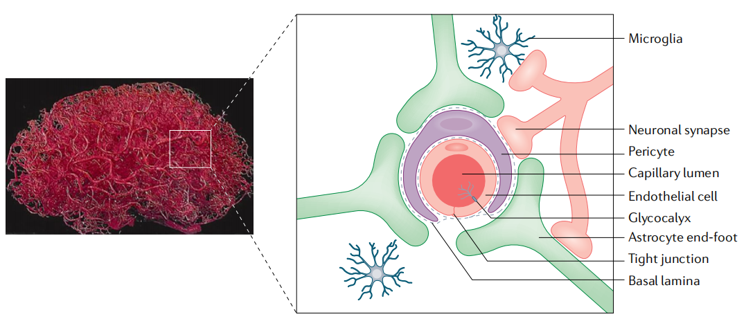 图1. 脑血管的解剖结构(Terstappen GC, Meyer AH, Bell RD, et al. Nat Rev Drug Discov. 2021.)