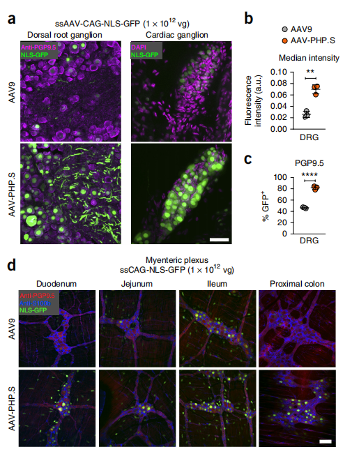 AAV-PHP.eB转导中枢神经系统,AAV-PHP.S转导周围神经系统