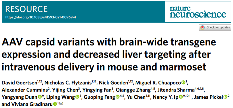 [3]Goertsen D, Flytzanis NC, Goeden N, et al. AAV capsid variants with brain-wide transgene expression and decreased liver targeting after intravenous delivery in mouse and marmoset. Nat Neurosci. 2022 Jan;25(1):106-115.