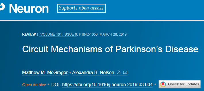 小编在这里给大家推荐加利福尼亚大学旧金山分校神经内科McGregor MM教授和Nelson AB教授联合发表在《Neuron》的综述文章,本综述集中讨论PD的主要临床特征和相关的神经环路功能障碍机制。作者首先回顾重要的疾病症状和一些相关的神经病理学。然后描述基底神经节-丘脑皮质回路、PD相关回路功能障碍的主要位点及相关环路解析模型、PD相关网络活性变化(包括神经元的频率、节律或同步)。