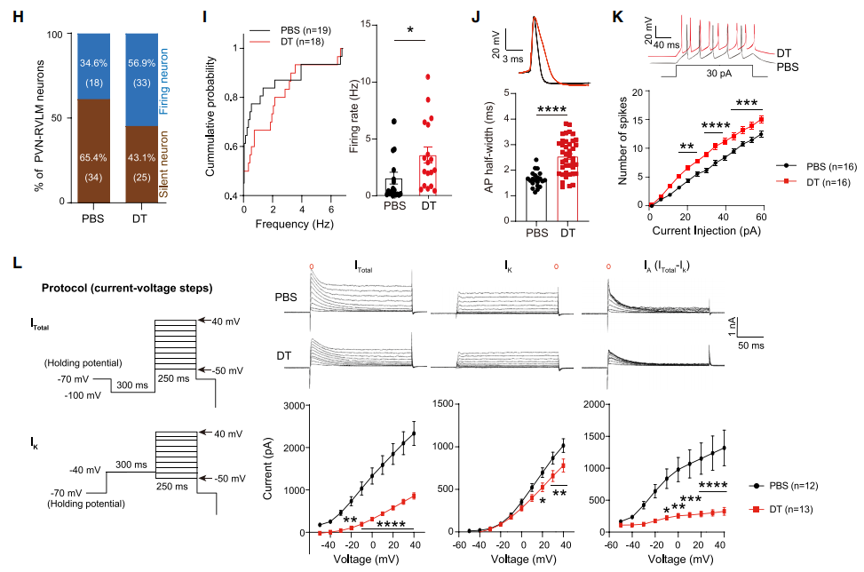 图2.消除小胶质细胞抑制PVN-RVLM神经元钾电流以增加神经元兴奋性