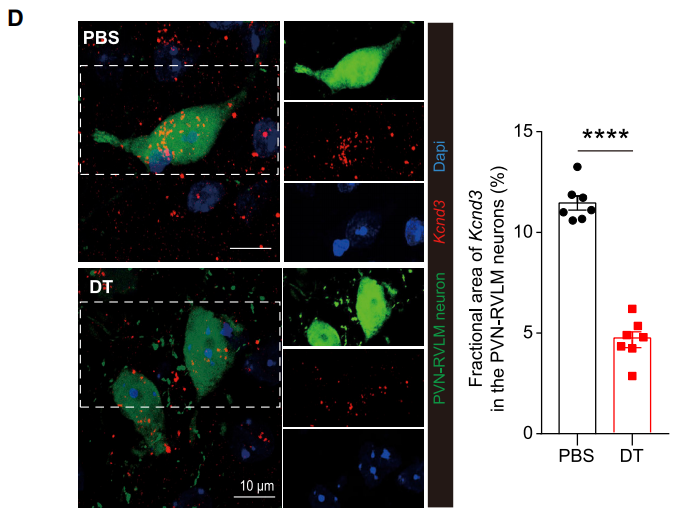 图3.消除小胶质细胞降低PVN-RVLM神经元Kcnd3表达