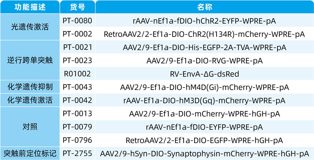 神经环路示踪病毒载体、基因编辑(敲入、敲除、点突变、敲低)、基因过表达/干扰服务、行为学小鼠模型构建、干细胞诱导分化、整包服务等。